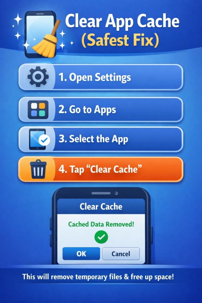 Method 1: Clear App Cache (Safest Fix)